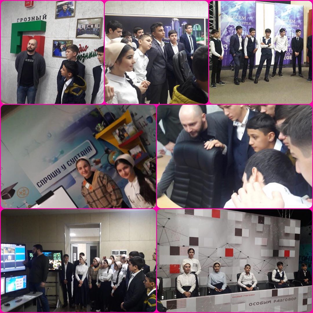 11.11.2019Учащиеся 8 А класса вместе с классным руководителем, Жарковой Анжелой Николаевной, в целях профориентационной направленности посетили телерадиокомпанию ЧГТРК и Радио «Грозный».