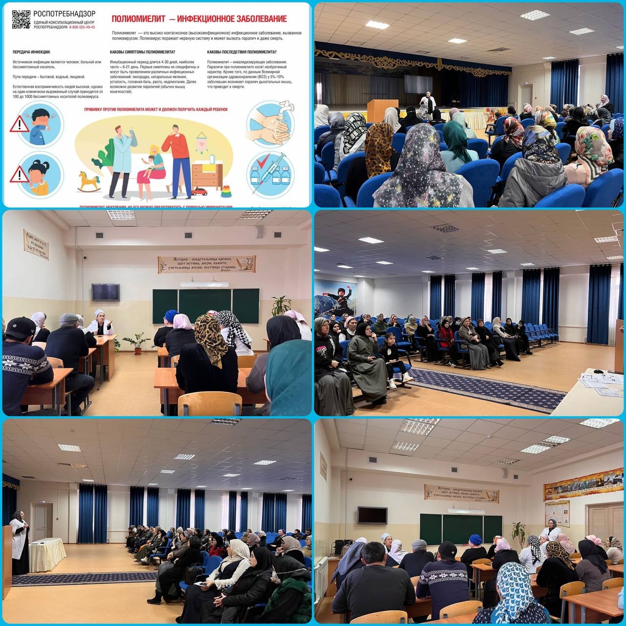Собравшимся рассказали об опасности полиомиелита. Полиомиелит-это опасное для жизни заболевание, вызываемое полиовирусом. Вирус передается от человека к человеку и может инфицировать спинной мозг человека, вызывая паралич (когда человек не может двигать частями тела). Также, в рамках профилактических мероприятий родителям рассказали о необходимости своевременного проведения вакцинации.