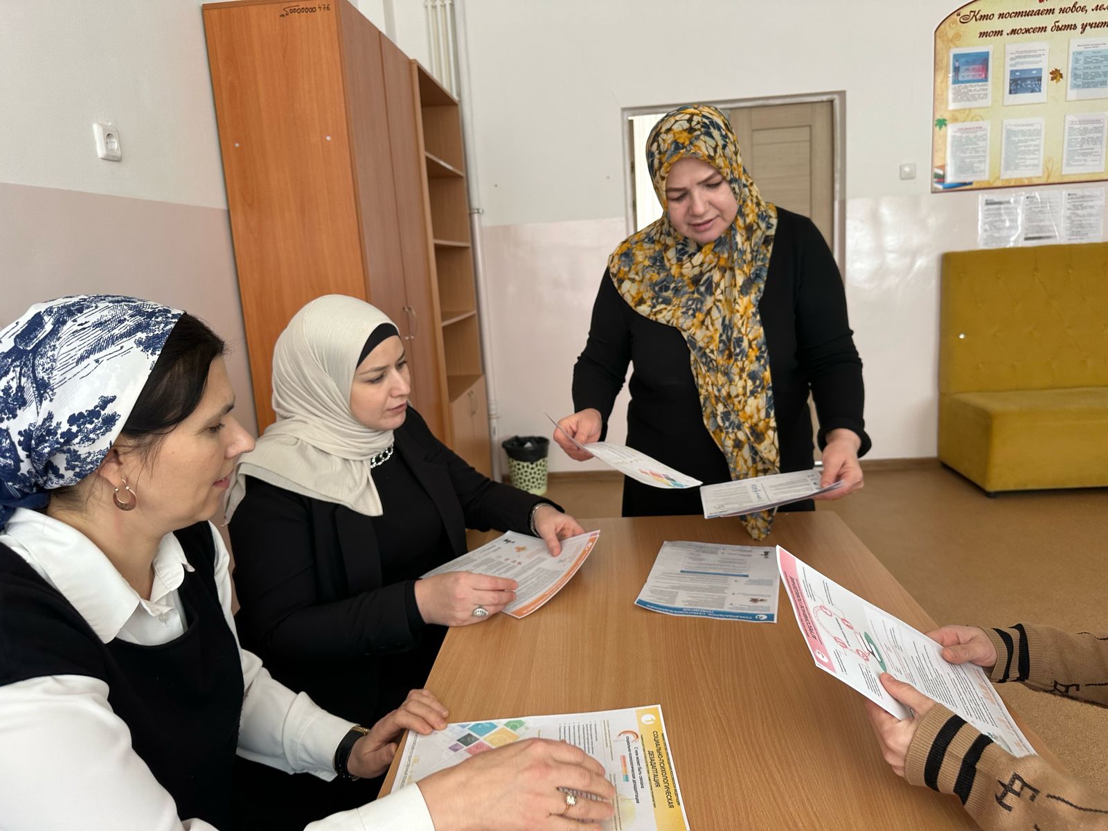 В рамках внедрения Памяток («Навигатор профилактики»), в школе педагог-психолог Эсханова Щ.Б. раздала памятки буклетов среди педагогов и родителей.