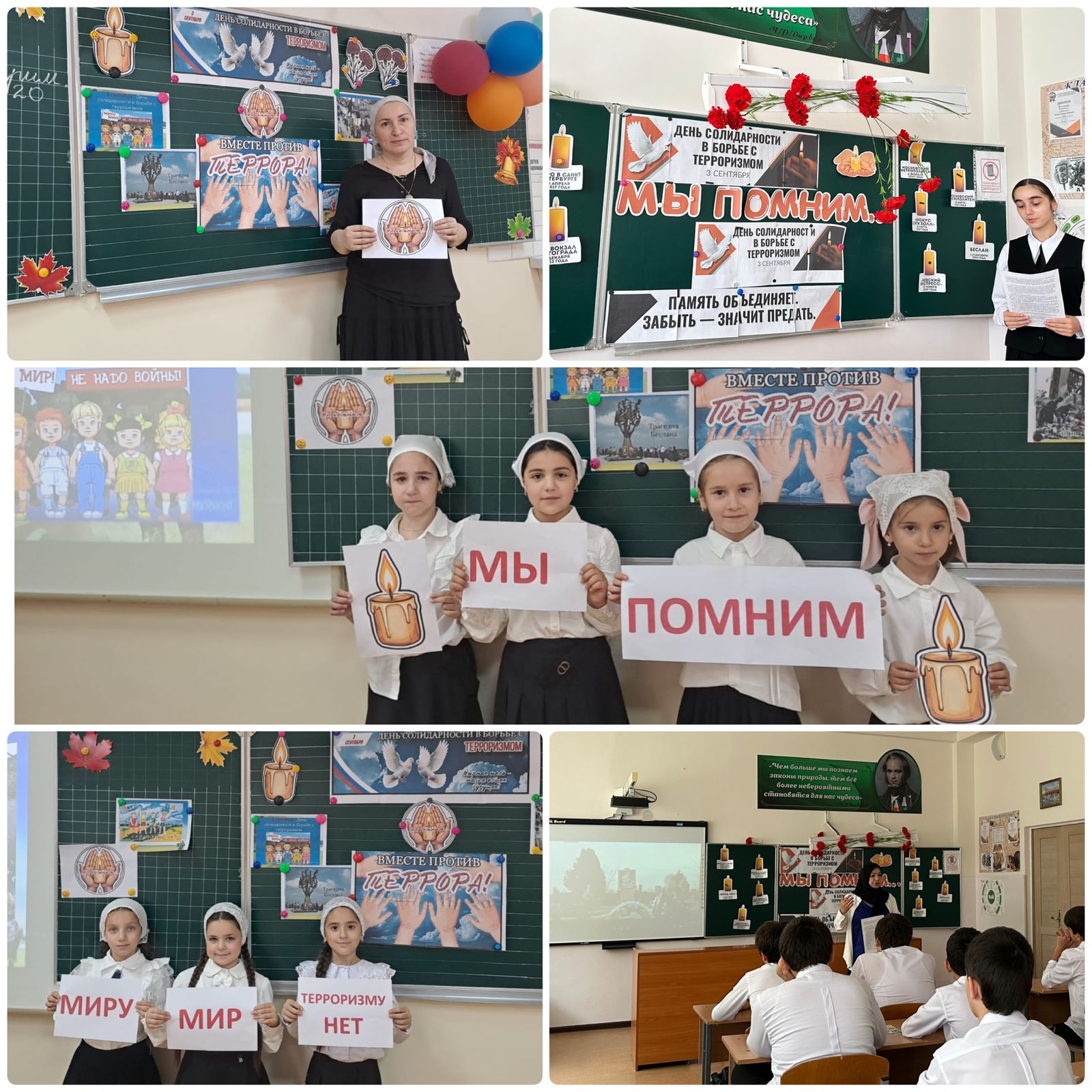 04.09.20253 сентября 2025 года в МБОУ «Гудермесская средняя школа №6» состоялись памятные классные часы, приуроченные ко Дню солидарности в борьбе с терроризмом. Эта дата в России символизирует единение общества и государства в противостоянии одной из самых серьезных угроз современности.Мероприятия были проведены для учащихся всех классов с целью формирования у подрастающего поколения активной гражданской позиции, воспитания чувства сострадания к жертвам террора и осознания важности сохранения мира и согласия.